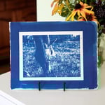 8 inch x 10 inch. Printed with cyanotype on archival paper, using a film photo, taken with my 35mm film camera.